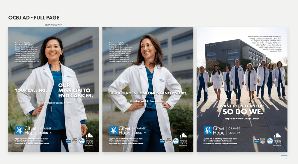 CITY OF HOPE ORANGE COUNTY COMMERCIAL Script: Elise GrayCreative Director: Scott Burris PRINT ADS PAID SOCIAL PRODUCT PACKAGING Share this: Click to share on X (Opens in new window) X Click to share on Facebook (Opens in new window) Facebook Like Loading...