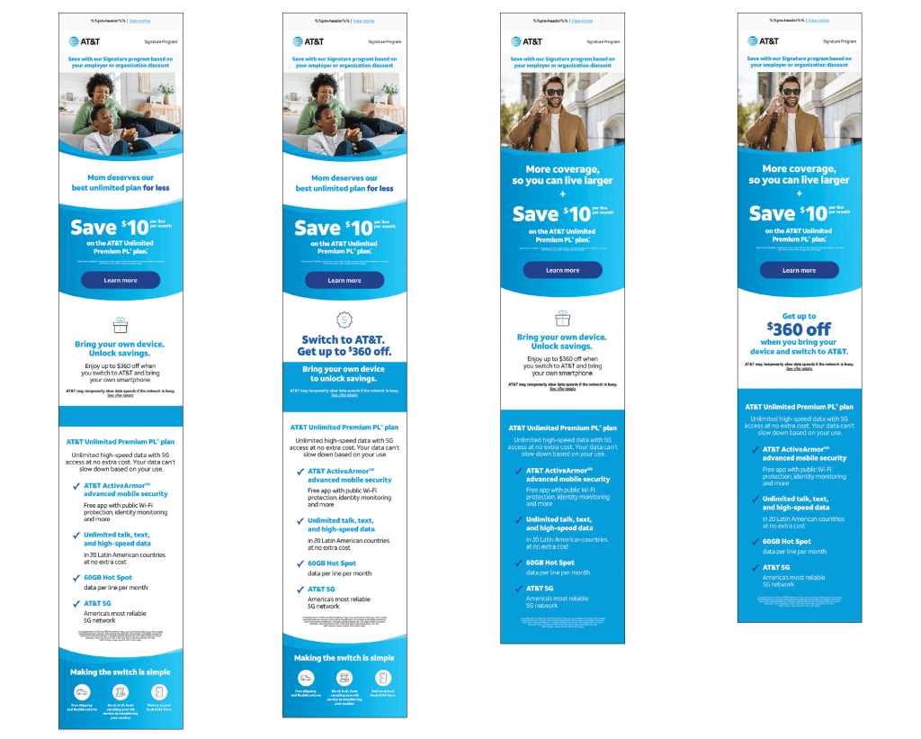 Seasonal emails created for the cross sell segment for AT&T consumers with mobile.