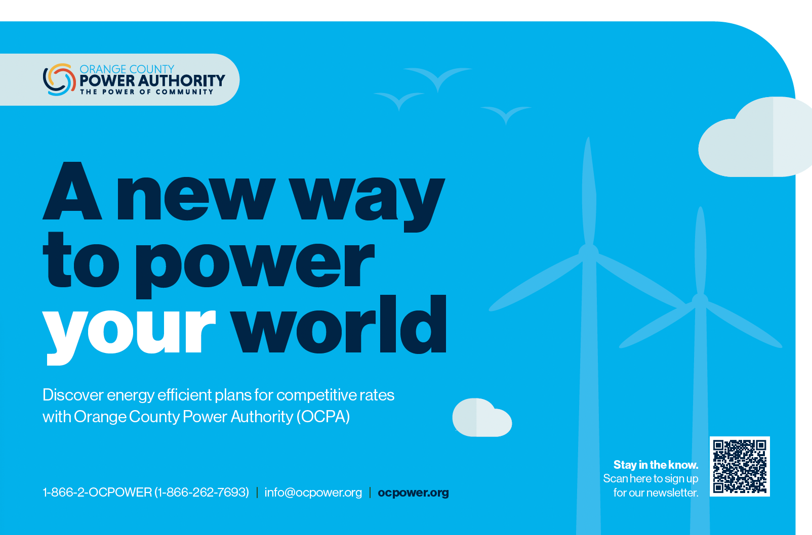 For the first time ever, OC residents have energy options. Orange County Power Authority provides competitively priced, reliable electricity with three renewable energy plans. Below is the creative under their recent rebrand.