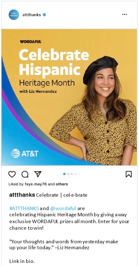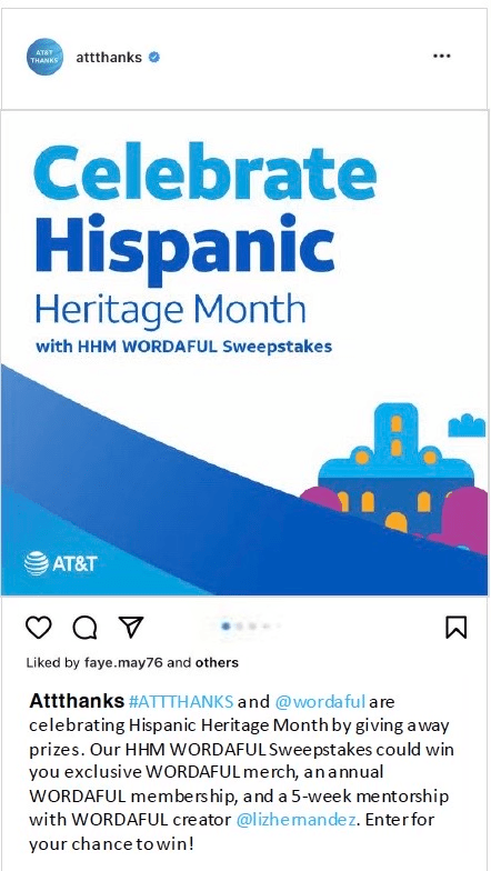 Assignment: AT&T THANKS needed a social campaign for their partnership with WORDAFUL. The campaign celebrated Hispanic Heritage Month and achievements within the Latinx community. The social campaign focused on everyday actions that inspire and help build communidad (community). Customers had an opportunity to win and participate in a Level Up Mentorship program, which focused on Latin Women Entrepreneurship, and exclusive VIP swag boxes.